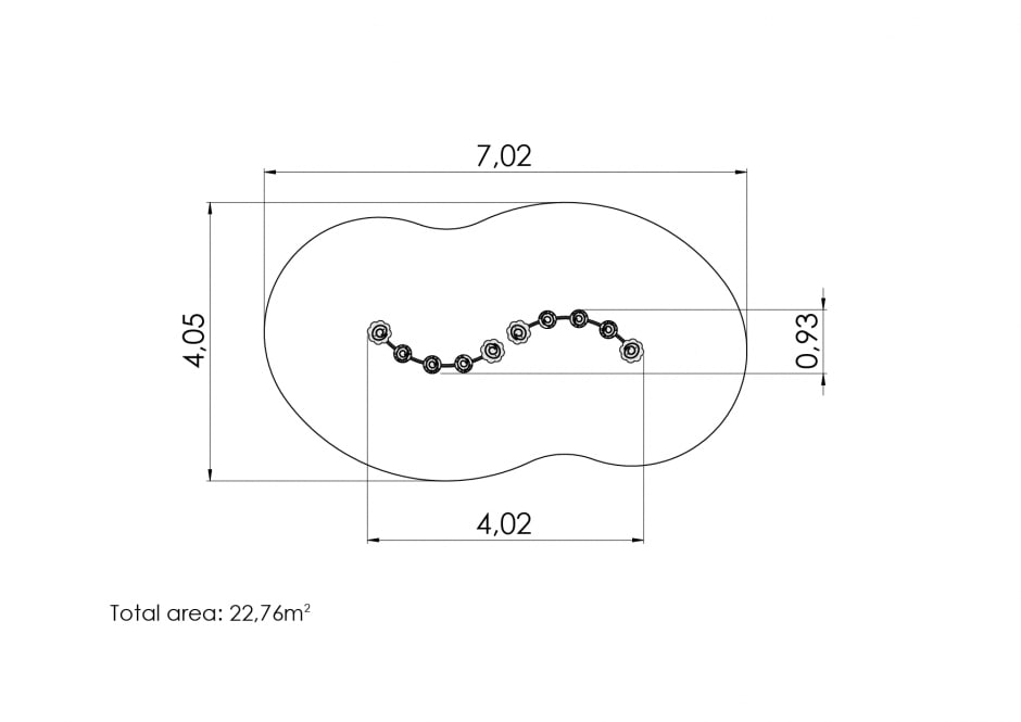 En flott balansebom som også kan brukes som benk. Høyde fra bakken: 0,35 m. Lengde: 4,02 m. Produsert i stål og plast.